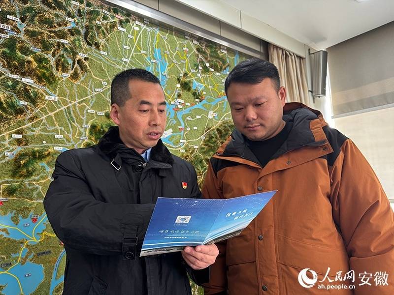 安庆港航中心工作人员在给夏先成(右)介绍“信用+”场景。人民网记者 胡雨松摄